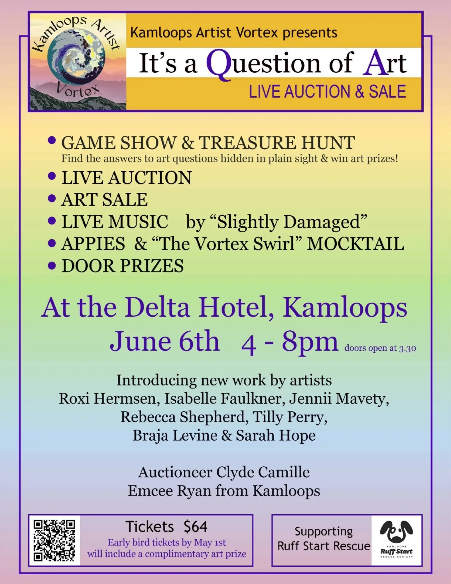 I was invited by this wonderfully talented group of artists to be part of a fun night of art, auction, games and live music this June 6th in kamloops. this event supports local artists and a local charity Ruff start rescue. I just wanted to send out a quick invite to you all. You can click on the link above to purchase or email me back and I can get you a paper ticket too. Below is all the information. It would be so lovely to see you there, Iām busy making new originals especially for this event.